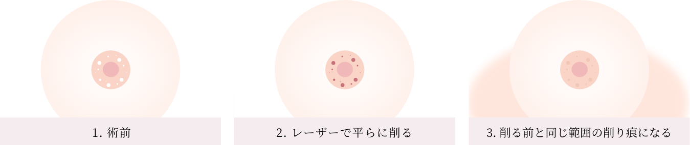 小さなモントゴメリー腺に対しては、レーザーによる治療を行うことが多いです。傷跡がほとんど残らず、ダウンタイムも短いのが特徴です。